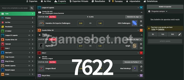 A aposta 7622 oferece aos jogadores a experiência mais conveniente de apostas em eSports!